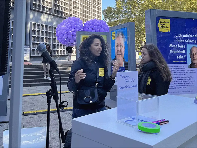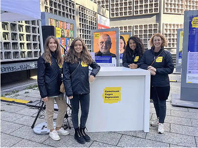 Mit einer Ausstellung zu unserer Initiative #GemeinsamGegenDepression waren wir vom 08.10. bis 14.10.2022 am Berliner Breitscheidplatz, um der Erkrankung ein Gesicht zu geben. Viele Gesichter, um genau zu sein.
